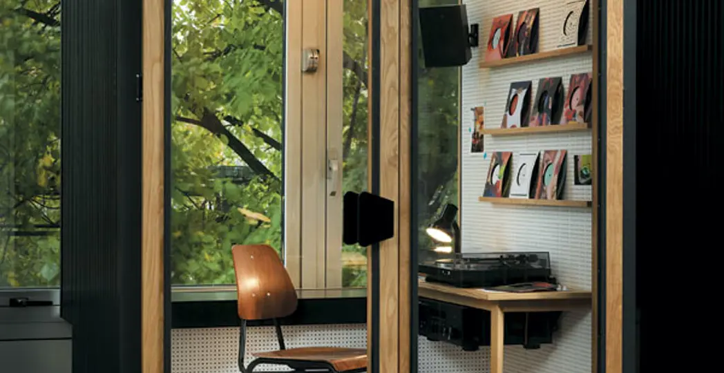 The 9-by-6-by-5-foot wood and glass booths are an important part of the exhibit, enclosing the listener in a single experience meant to focus their thoughts and touch upon issues of individual isolation, communication and the value of connection.