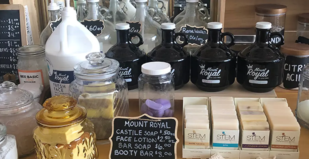 “We specialize in offering bulk refills on cleaning products and body care products, as well as sustainable swaps for more wasteful products in your home,” says co-founder Jenn Szalkowski.