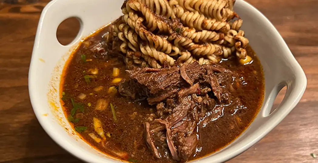 Inject all the birria into my veins. If you spent all summer eating birria tacos, this explosion of beef broth, a soup of floating chunks of tender, pull-apart meat and wavy noodles, is the winter warm-up meal you need. Pro tip: Pass on the consomme dipping broth and dunk your tacos in this. 12102 Madison Ave., Lakewood, 216-801- 4666, hola-tacos.com