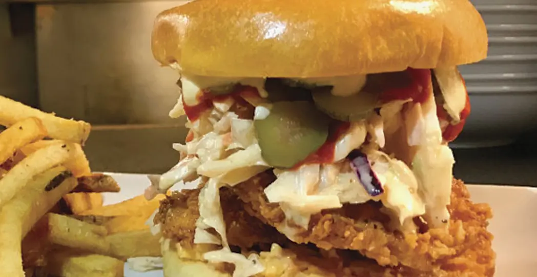 Bird on a bun sandwich, $14: A staff specialty that finally made its way onto the menu, this sandwich layers a crispy chicken breast with pimento cheese, coleslaw, dill pickles and a spicy remoulade. “We took the classic Chick-fil-A sandwich and put our stamp on it,” he says. “It just grew out of something that we ate all the time and loved.”