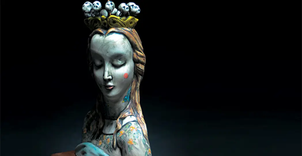 Her two kids helped spark “Crowned in Guilt and Love,” a sculpture inspired in part by thrift-store figurines. It’s included in the three-piece series Epp created for the Canton Museum of Art’s exhibit Crowns: Crossing into Motherhood.