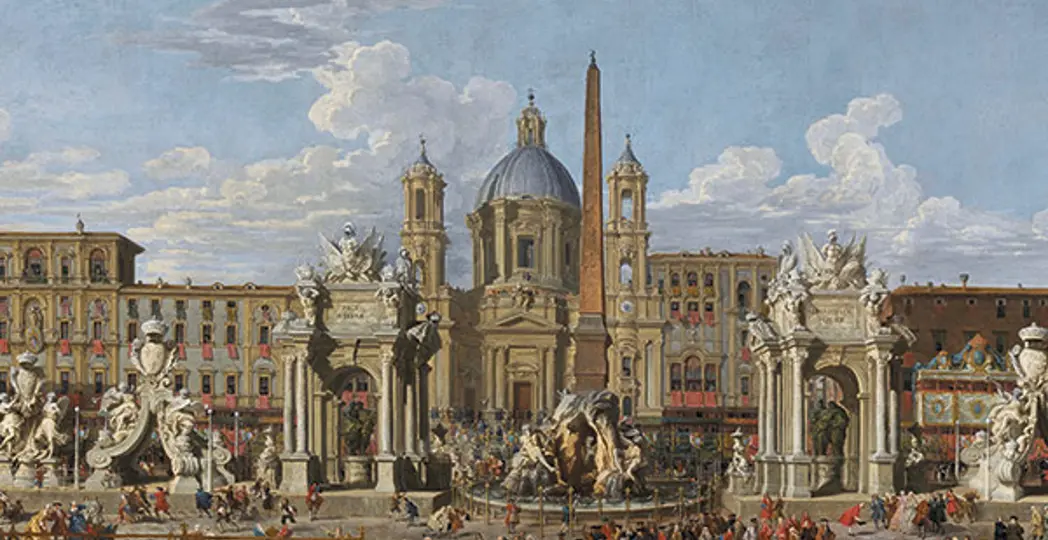 Before Twitter, there was canvas. In Eyewitness Views: Making History in Eighteenth-Century Europe, which runs through May 20, the Cleveland Museum of Art examines a time when paintings were among the only means to document important historical moments. Works such as Giovanni Paolo Panini’s Preparations to Celebrate the Birth of the Dauphin of France in the Piazza Navona were often commissioned by rulers, ambassadors and church officials as a way to underscore their significance. “On a daily basis, we’re being asked to judge what is truth,” says Betsy Wieseman, the museum’s curator of European paintings and sculpture, 1500-1800. “These paintings are in many instances the only visual record we have of a historical event.” Here’s three key features in Panini’s painting.
